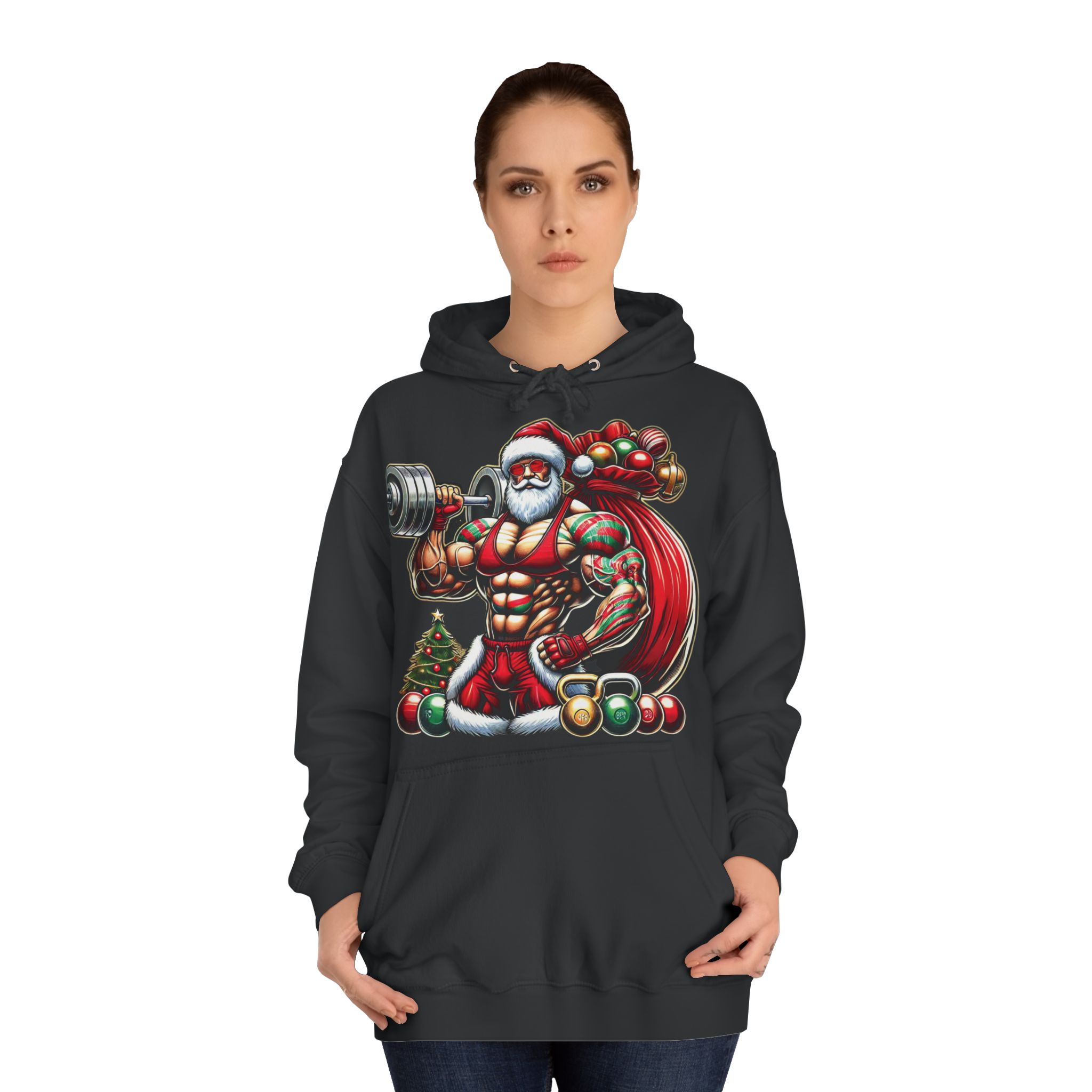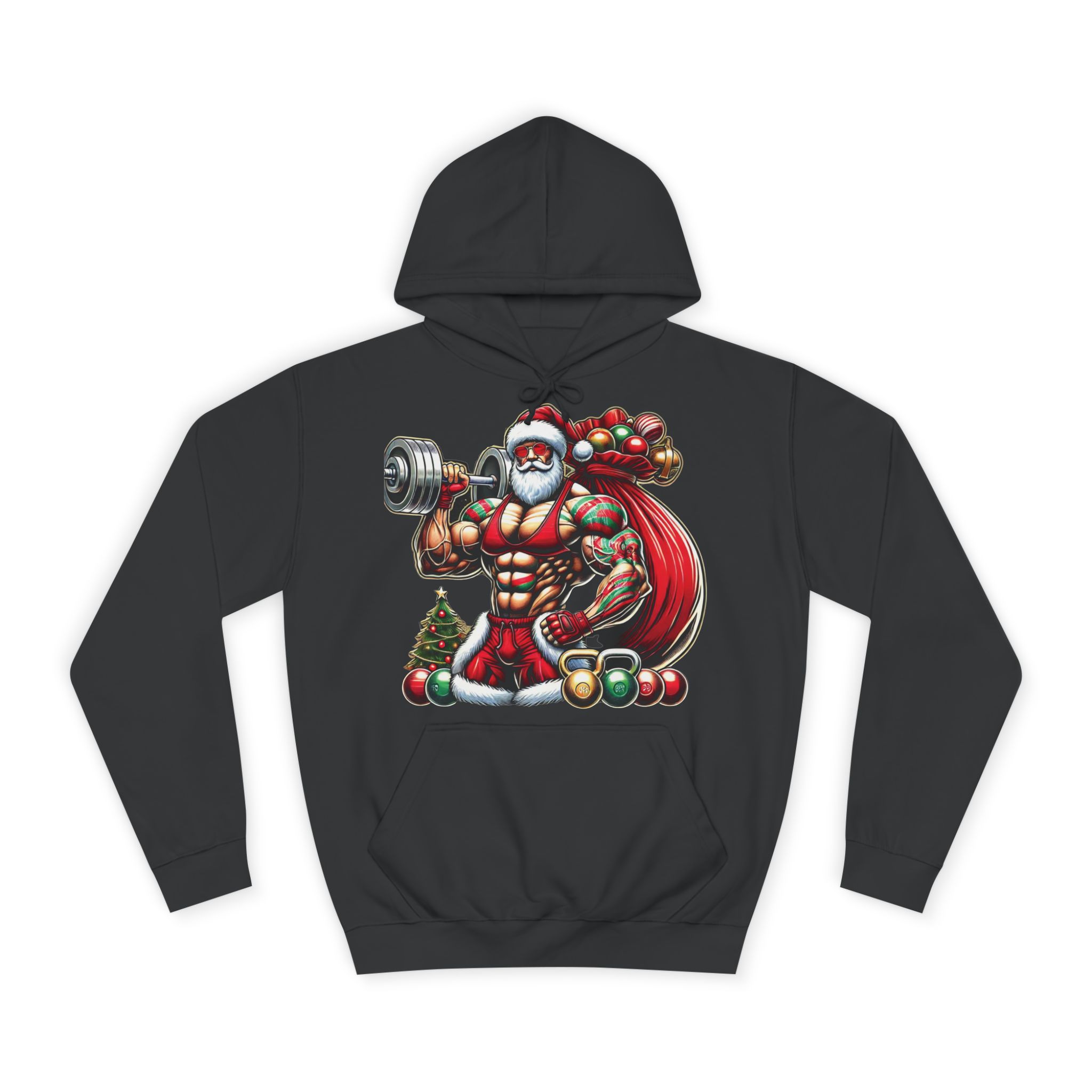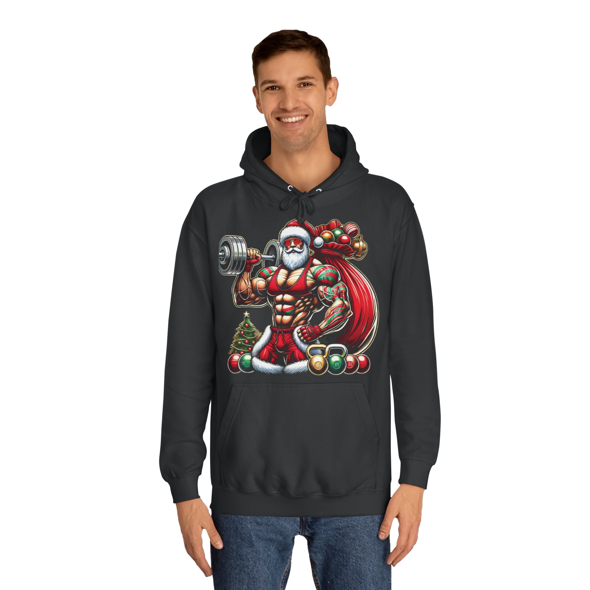 Lift your spirits this season—order your Bodybuilder Santa Hoodie today!